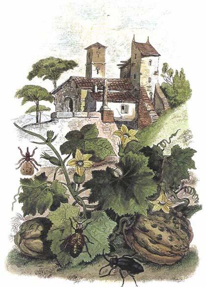 终于可以观察洞穴了,这是一个比较狭窄而不太深的洞穴,足够西绪福斯母亲围绕着它的宝贝转动。这个地下室由一个物体构成,那简直就是一个造型奇特的艺术杰作,很像缩小的梨状物。它富有光泽,曲线十分优雅,不过这种完美只是昙花一现。很快,优雅的小梨上就覆盖了多节扭弯的黑色瘿瘤,变得非常丑陋。这些难看的结节从何而来呢,我感到困惑。不过,幼虫使我从困惑中解救了出来。