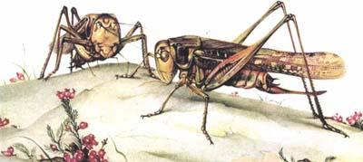 另外一些蝗虫并不会对它们产下的卵漠不关心,比如普通的黑条蓝翅蝗虫,以及偶尔发现的黑面蝗虫。这两种蝗虫产卵的姿势与意大利昆虫一样,将肚子垂直埋入沙中,然后半个多小时一动不动,只是头轻轻地摇晃,这表明身体正在沙中用劲。两个产妇终于从沙中钻出来,接着把后爪高高地举起,往洞口上扫一些沙子,紧接着踩实。它们的胫骨呈天蓝色或玫瑰红色,上下来回挥动时就像下雹雨一般,间或用脚后跟把洞口踩实,这景象实在壮观。就这样,洞口随着脚后跟迅速地夯实而封闭起来。产卵的坑彻底不见了,任何一个居心不良的人仅凭借视觉都是无法发现的。而且,那粗大的后腿抬起落下时,会稍稍刮到鞘翅的边缘,发出轻微的唧唧声,好像昆虫在阳光下享受平静的午休时快乐地歌唱一样。