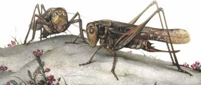 随后便是产卵的工作了。虽然夫妻住在一起,他们却过着吵架的生活。丈夫忍受着家庭暴力度日,被摧残得四肢不全,就连宝贵的乐器也被拆毁。如果居住地在野外,丈夫一定会逃跑。妻子对丈夫的残暴行为,不禁让我们产生深思。刚刚还是一对恩爱的夫妻,现在妻子变成了泼妇,强壮的丈夫遭受恐怖的虐待,身体残缺。自然界的规律让我们了解,在蚱蜢和蟋蟀世界中,雄性在生命沿袭中占据次要地位,它们将机会留给了真正的生殖者——雌性,在完成自己的任务后,便会消失。雄性充当了繁殖的合作者,在前一秒还是亲密的爱人,后一秒变成了厌恶的敌人,遭受虐待而死。