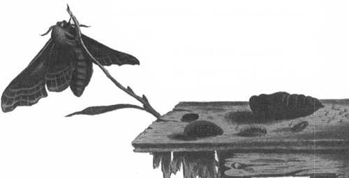 几天后,小蓑蛾走出房子,变得异常丑陋。这个丑八怪,初生的毛虫都比它漂亮。它没有翅膀,没有皮毛,在腹尖上,居然还有一个令人恶心的白天鹅绒环圈。在体节上,背上当中还有一个黑色长方形的大斑点。而在它身上,还竖着一根输卵管。孵卵的小蓑蛾像钩子一样弯曲。它的爪子抓着房子的下端,输卵管插在后天窗。这样,它的婚礼就在秘密进行,它的子女也在成群地迁移。